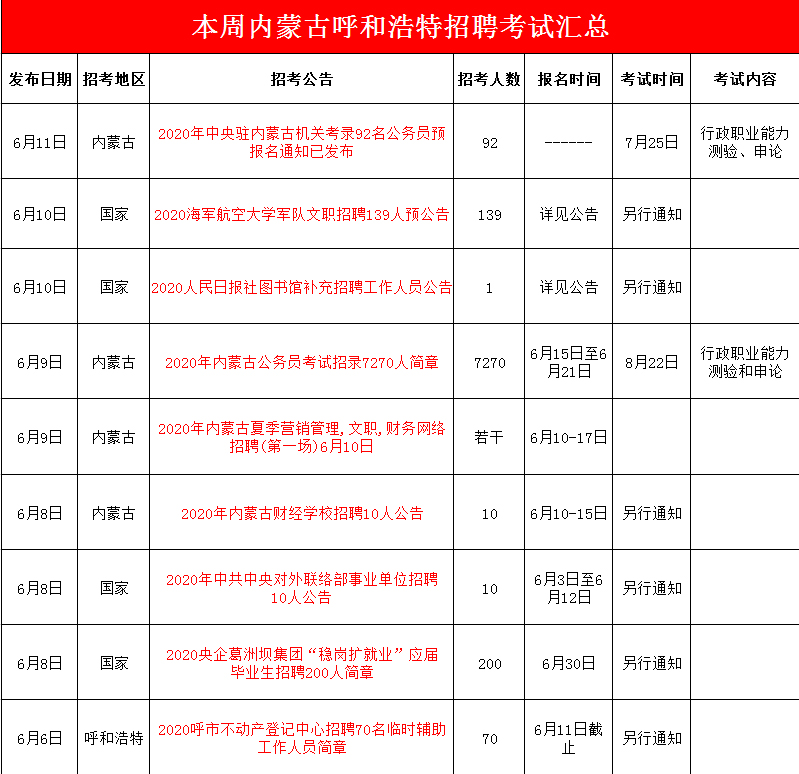 为了方便备考内蒙古呼和浩特各类招聘考试的考生及时掌握考试动态,为考生搜集发布内蒙古和呼和浩特各类招聘考试公告、报名时间、成绩查询、考试时间、面试名单 ...